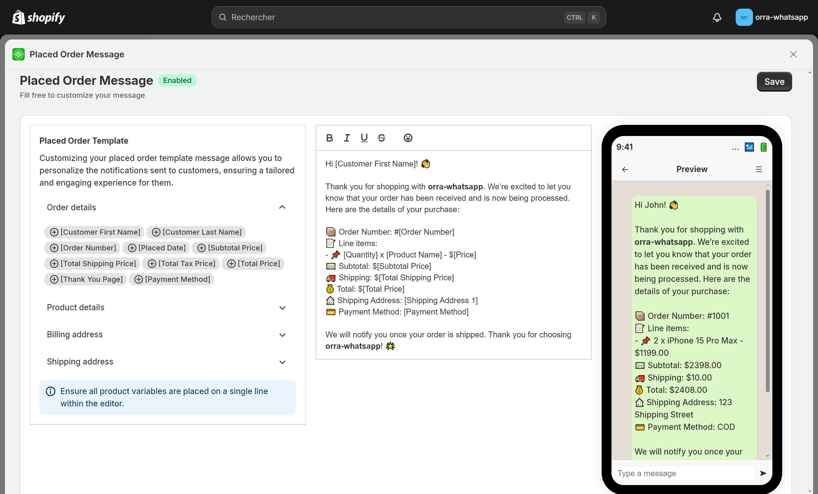 Orra is a Shopify app designed to automate customer communication through WhatsApp notifications. It streamlines order management by sending automatic messages for order placement, fulfillment, and tracking.